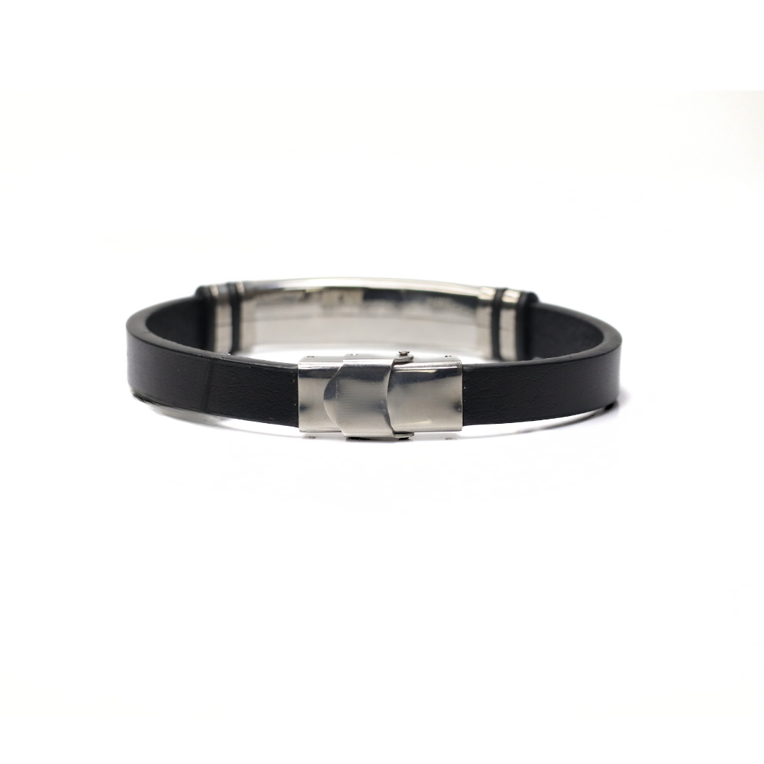 Wykonana z naturalnej czarnej skóry i stali, posiada centralny element z bursztynu bałtyckiego o kontrastowych kolorach - mlecznym i czarnym. Geometryczny wzór w prostych liniach nadaje jej wyjątkowego stylu i męskiego charakteru.