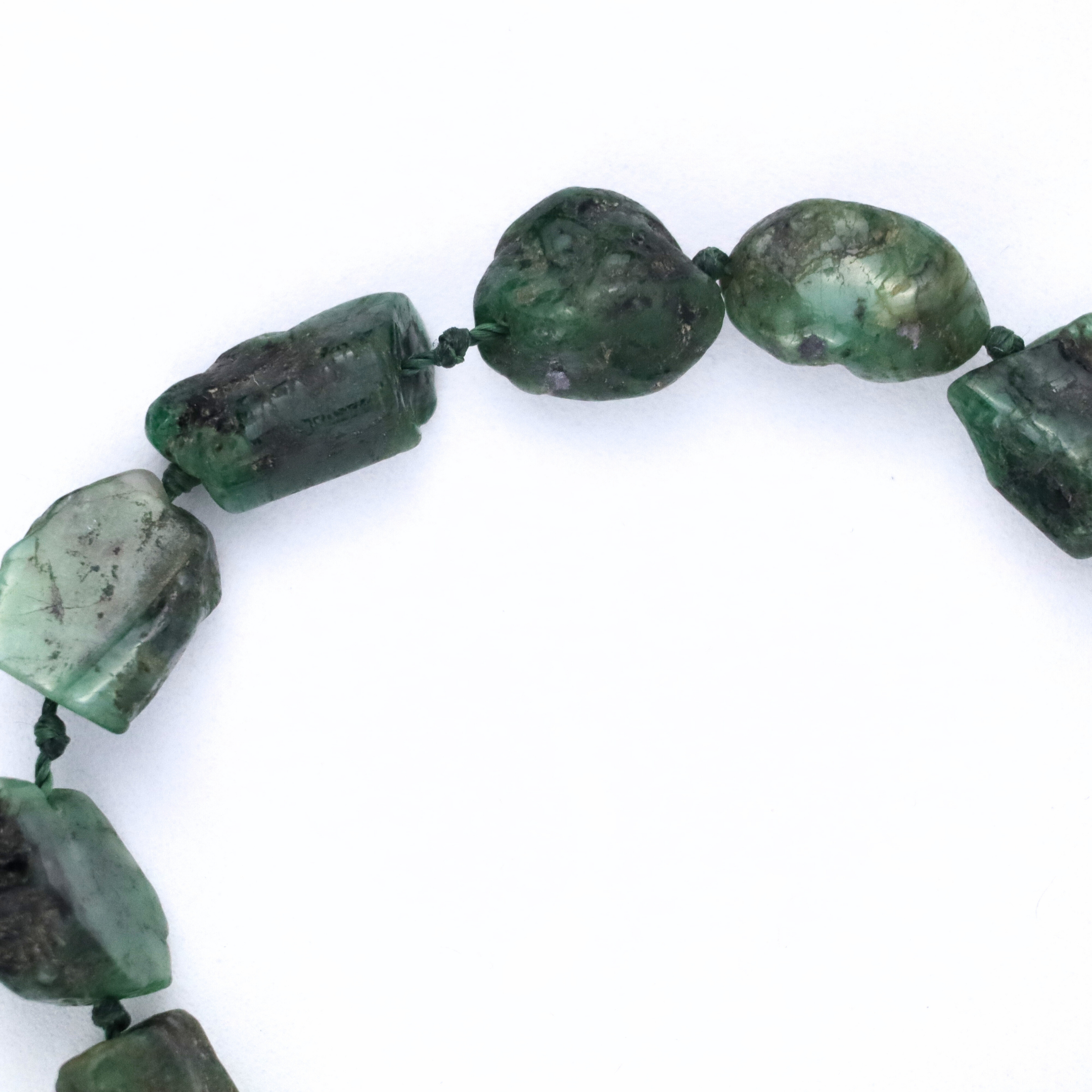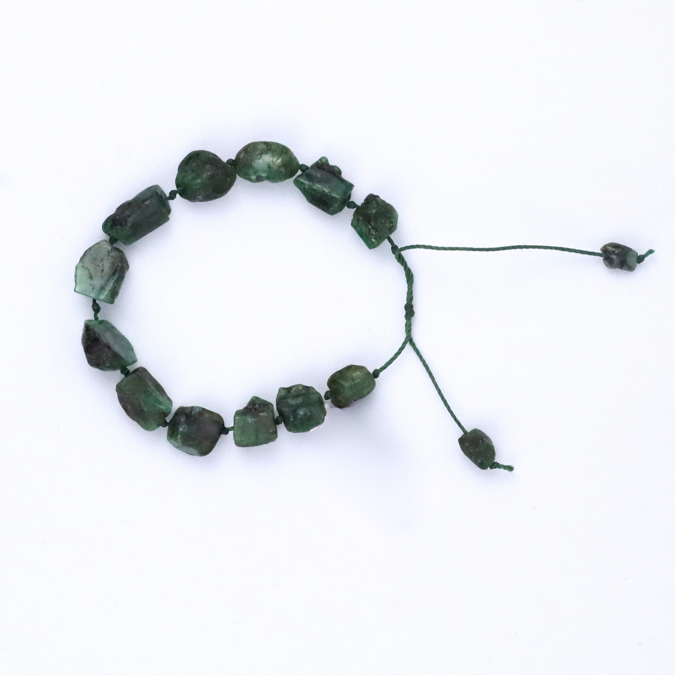 Unikalna bransoletka wykonana z surowych, naturalnych szmaragdów o głębokim, zielonym kolorze. Kamienie o nieregularnym kształcie tworzą wyjątkową kompozycję, która zachwyca swoją autentycznością i naturalnym wdziękiem.