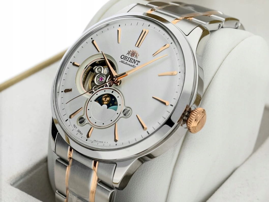 NA BIAŁEJ TARCZY JEST OKIENKO OPEN-HEART I DRUGIE ZE WSKAZANIEM DNIA I NOCY.