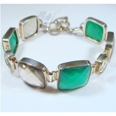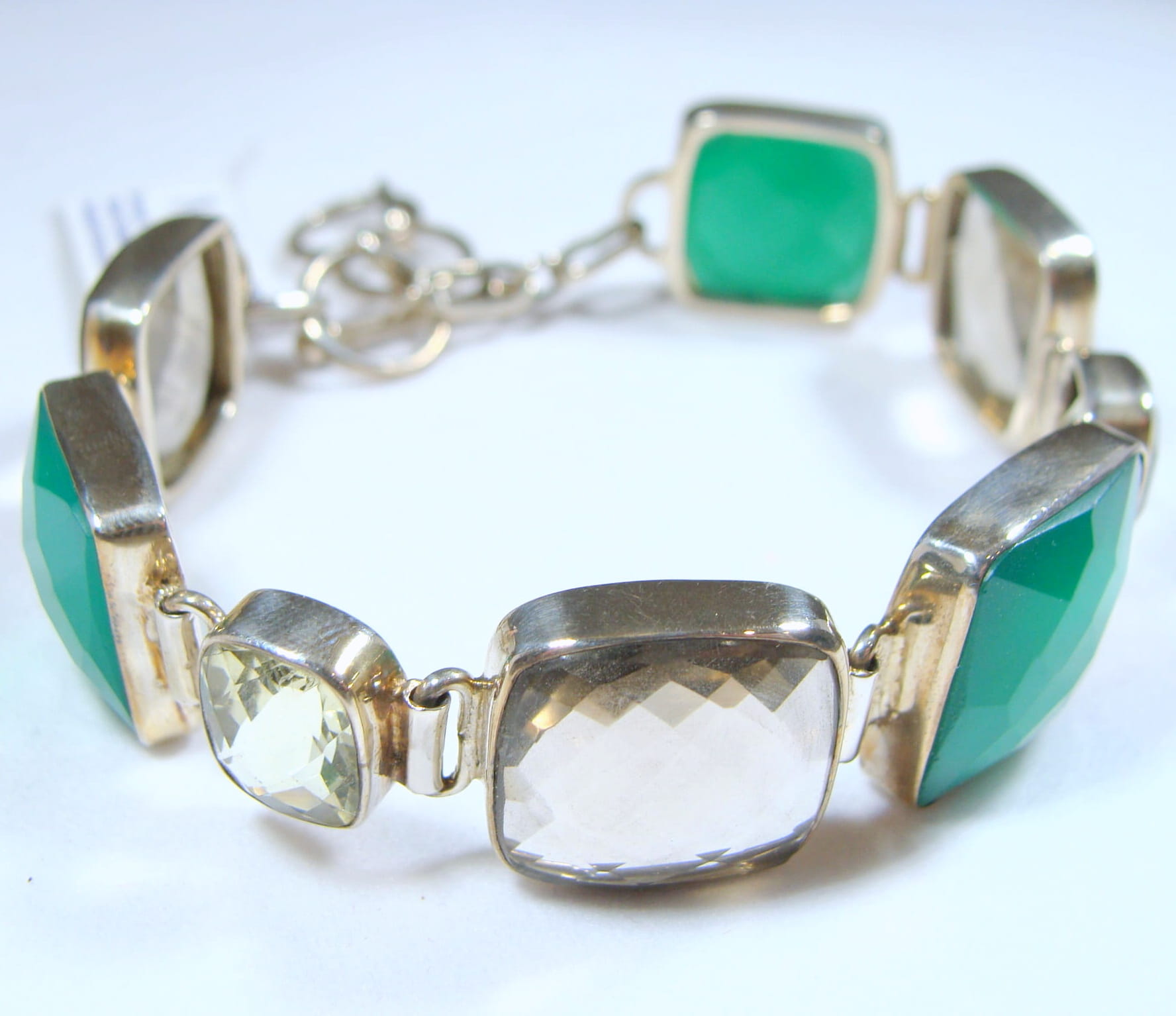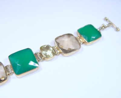 Srebrna bransoletka z kwarcem dymnym, onyxem i cytrynem