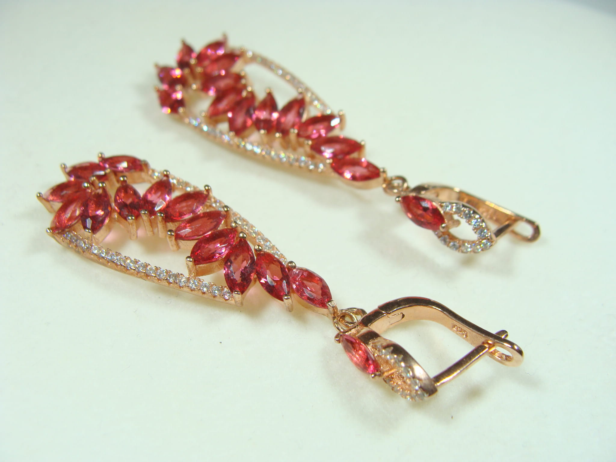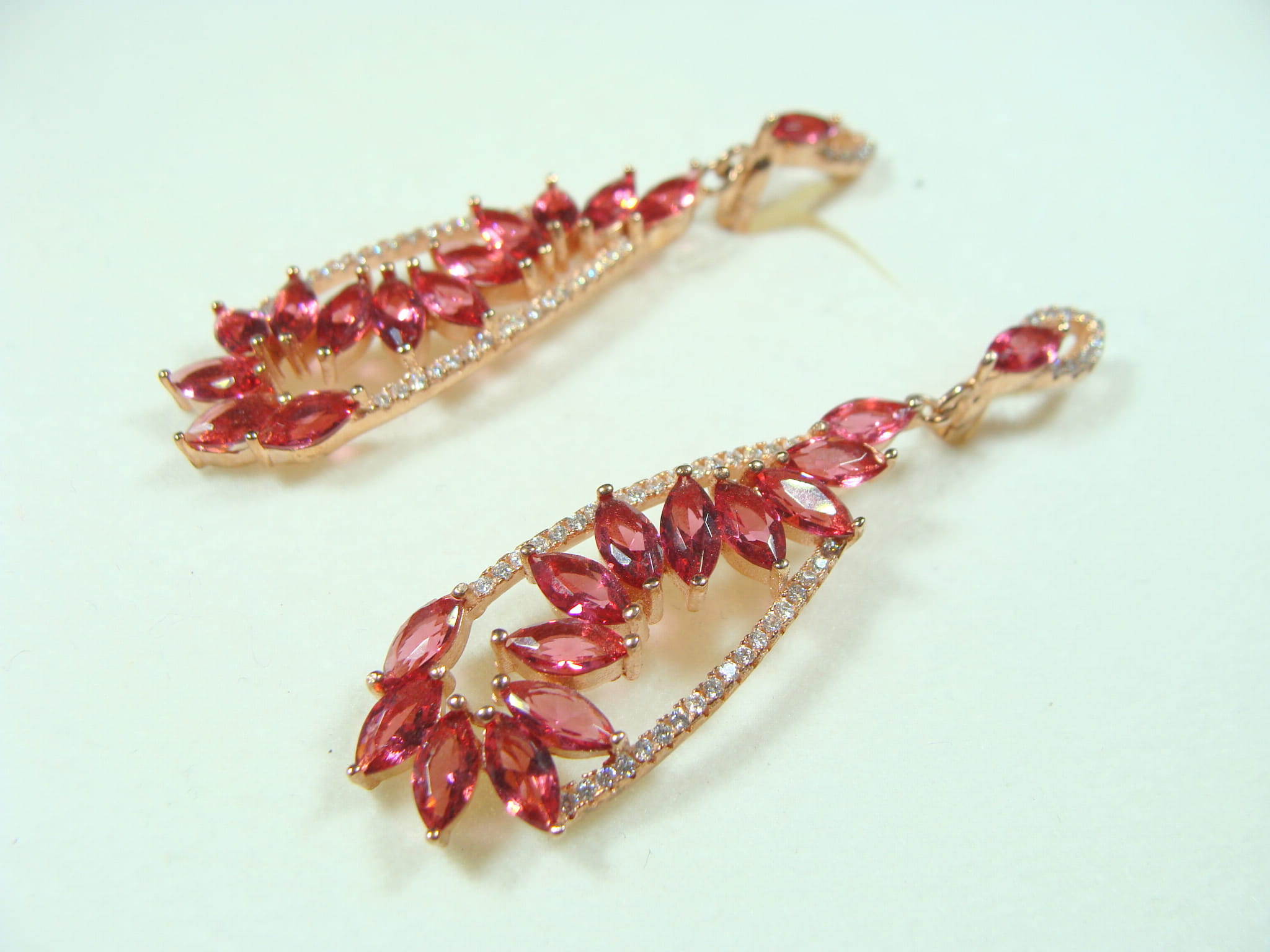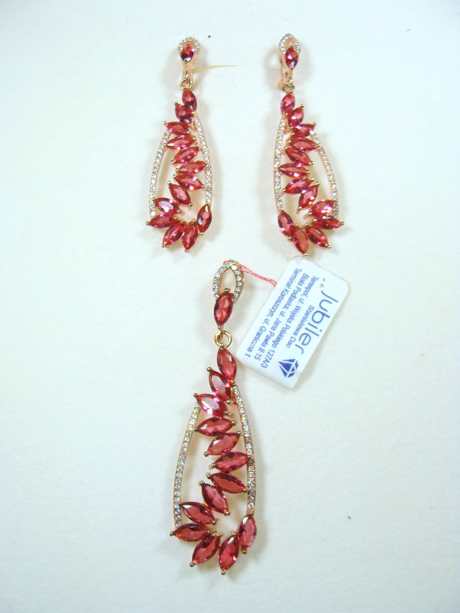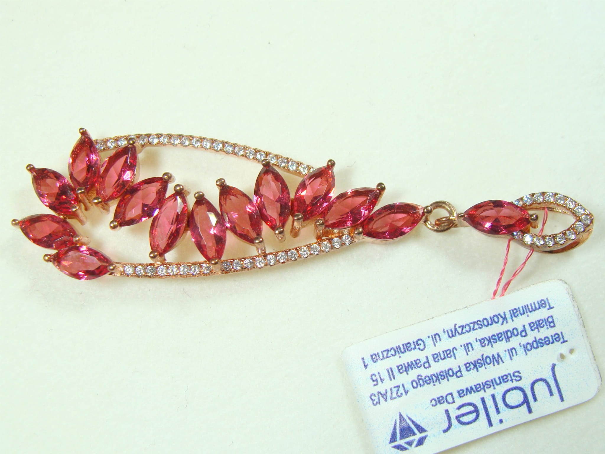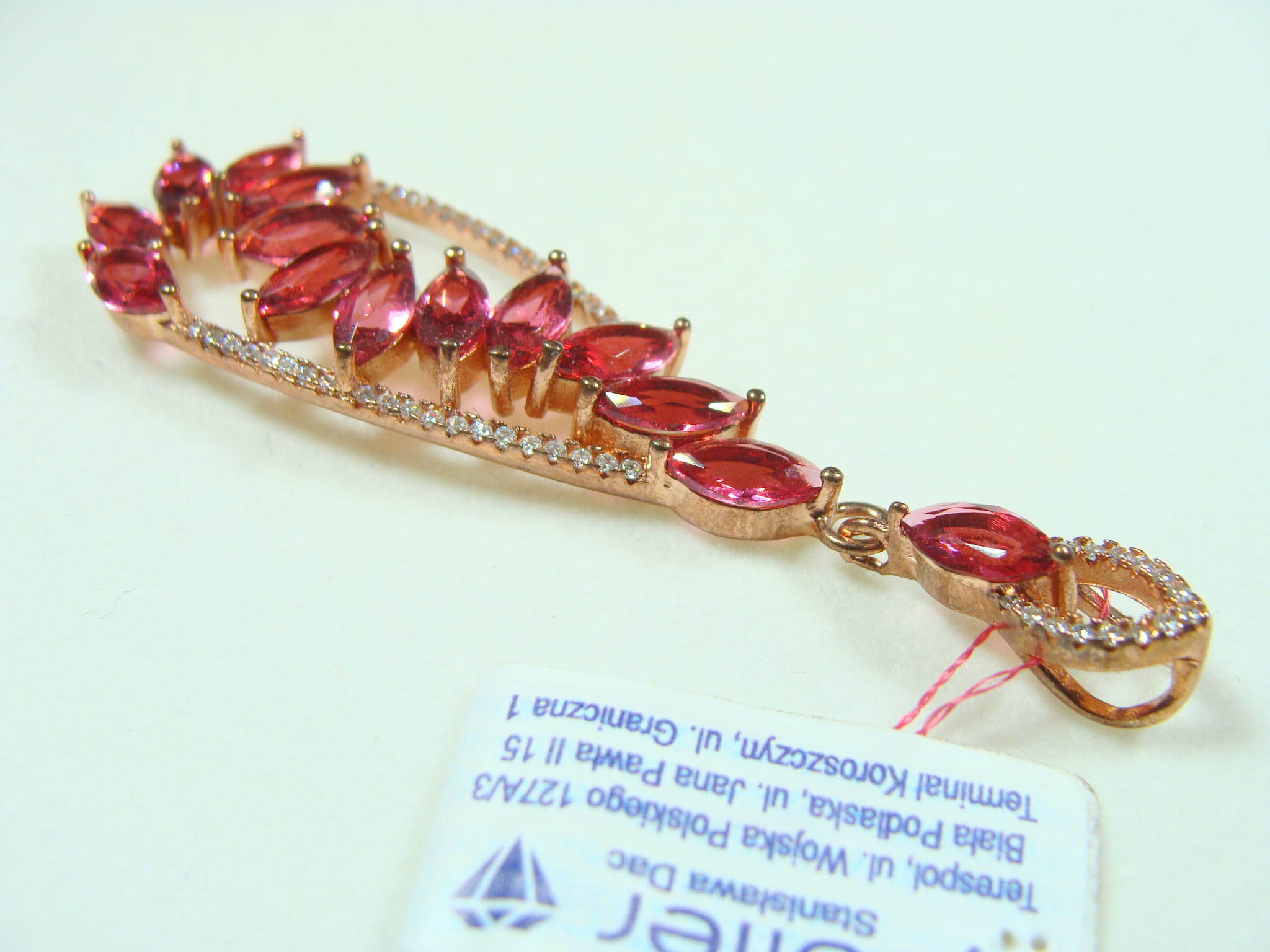 Niezwykle efektowny komplet - kolczyki i zawieszka - wykonany z pozłacanego srebra w kolorze różowym.