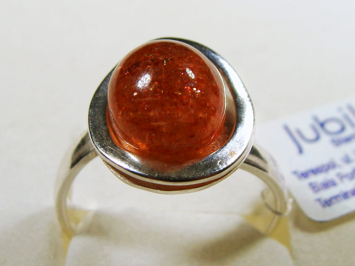 Pierścionek wykonany ze srebra z oprawionym kamieniem - kamieniem słonecznym.