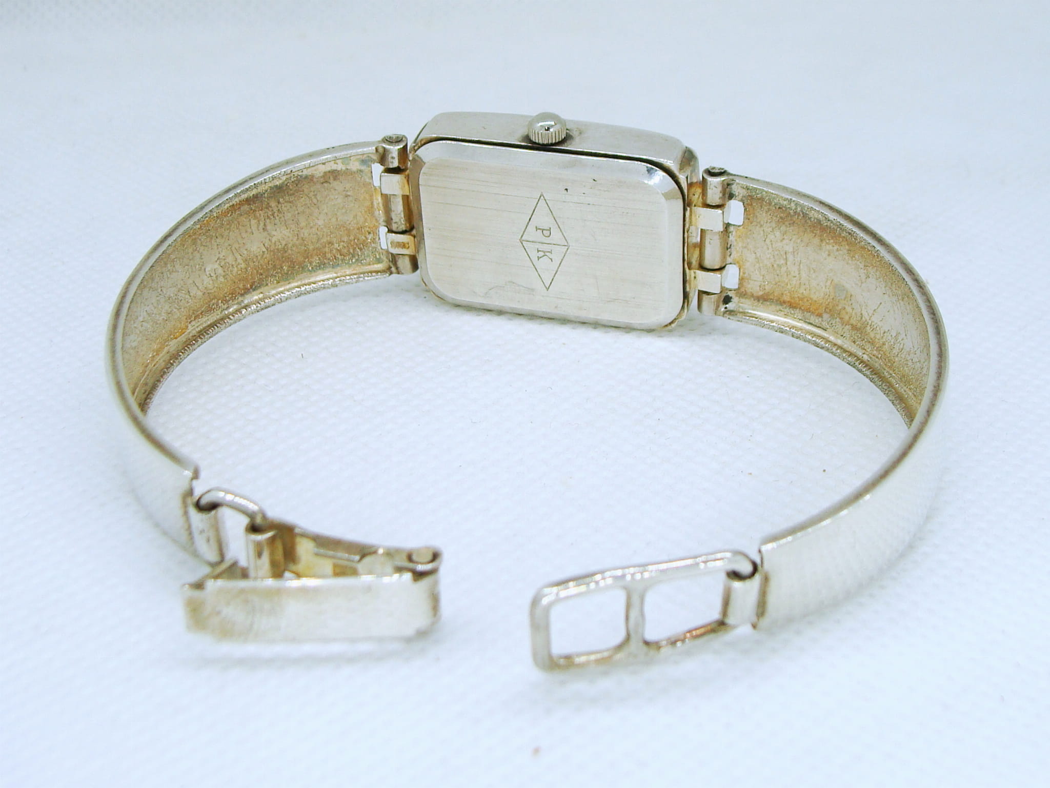 Klasyczny zegarek damski z prostokątną kopertą, wykonany ze srebra o próbie 925.