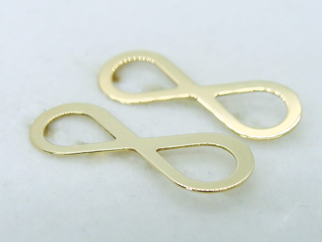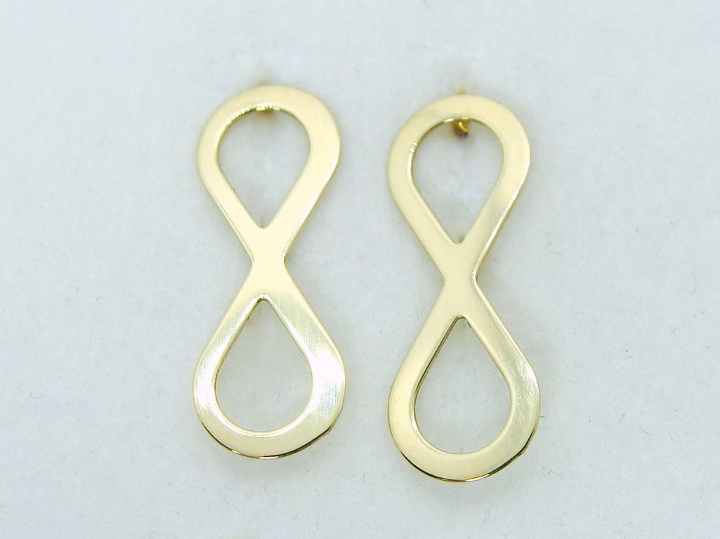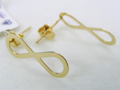 Kolczyki nieskończoność zapinane na sztyfty, wykonane ze złota w kolorze żółtym.
