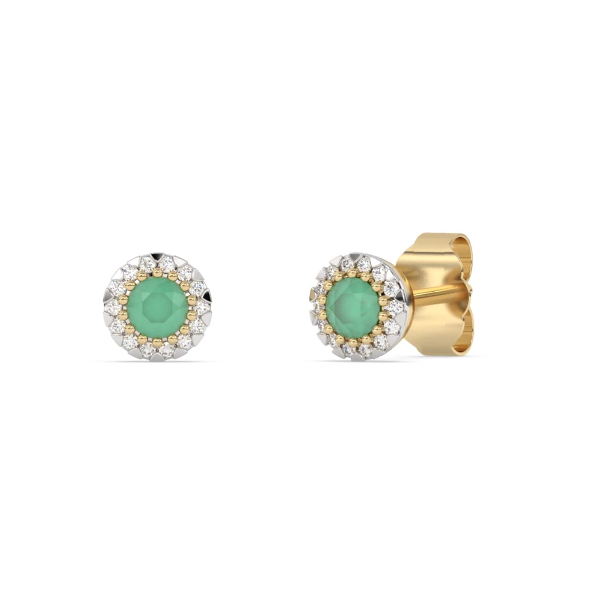 Centralnym punktem kolczyków jest okrągły szmaragd, otoczony brylantami, które podkreślają zieloną barwę kamienia