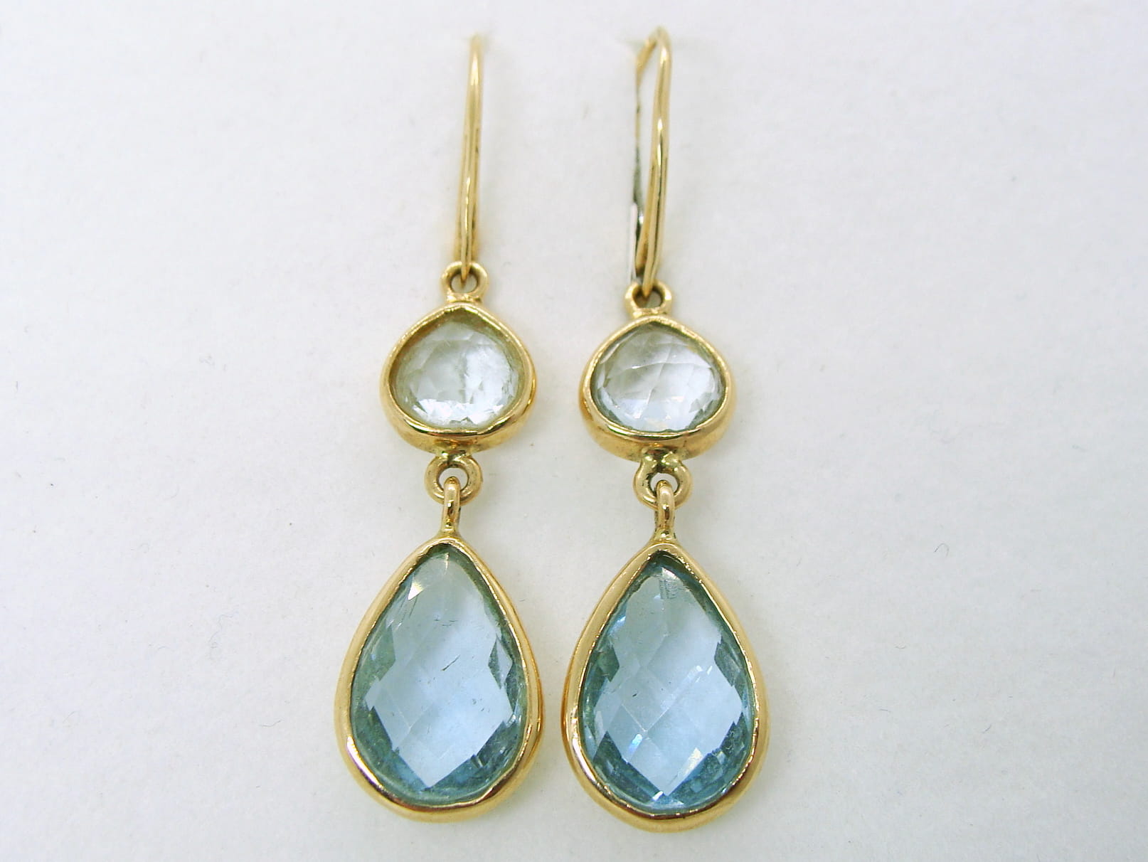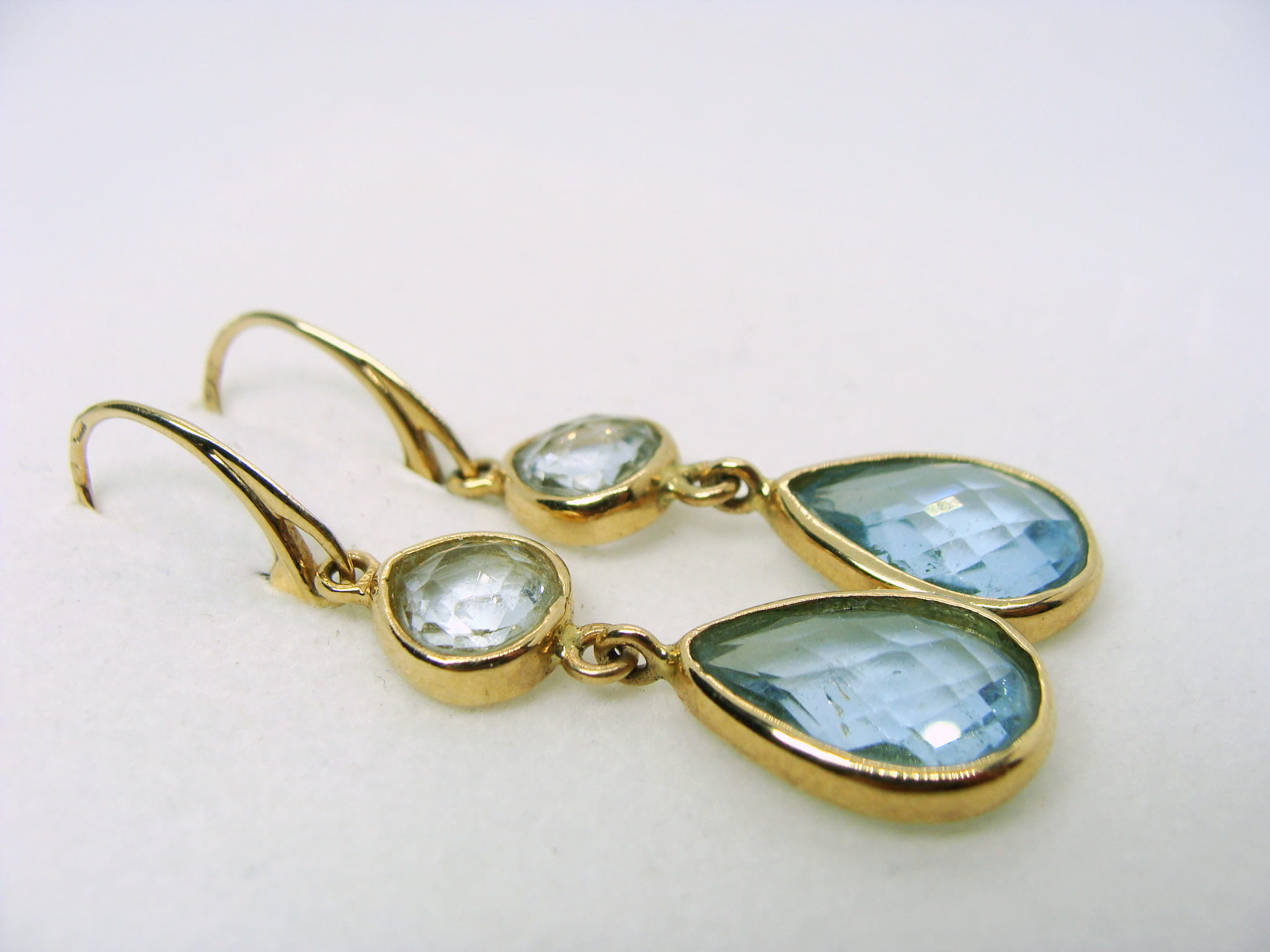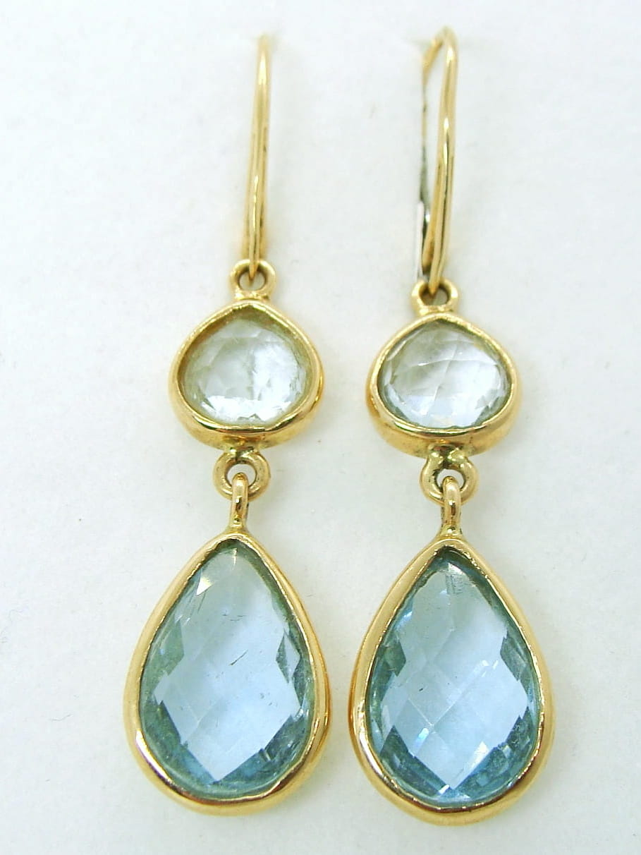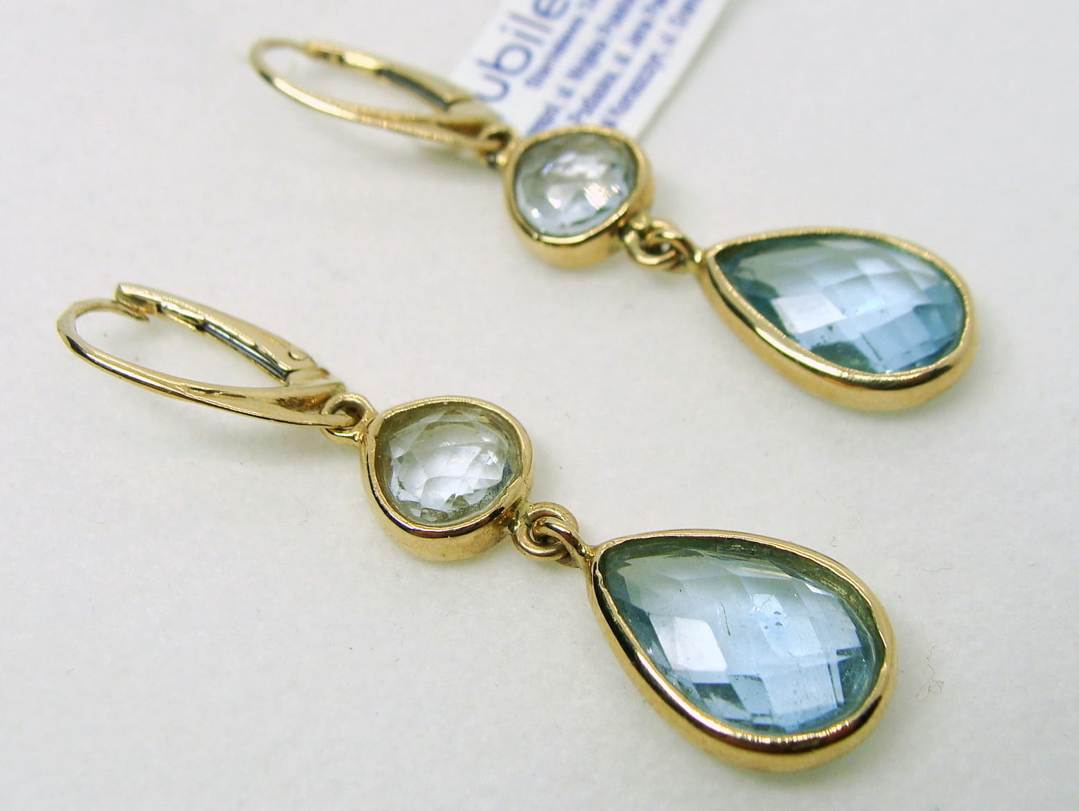 Kolczyki wykonane ze złota w kolorze żółtym. W złotej oprawie umieszczone zostały kamienie naturalne - topaz.
