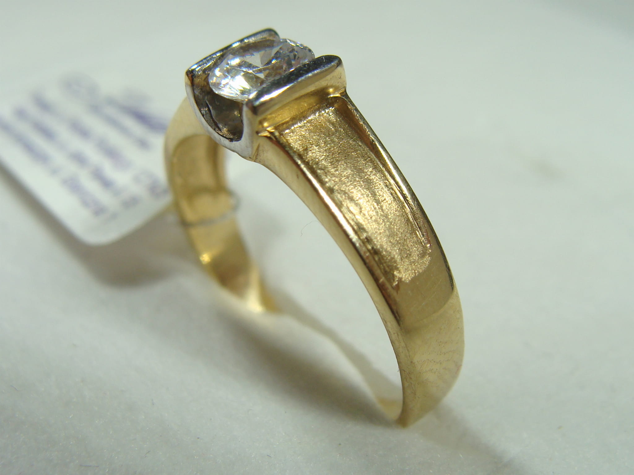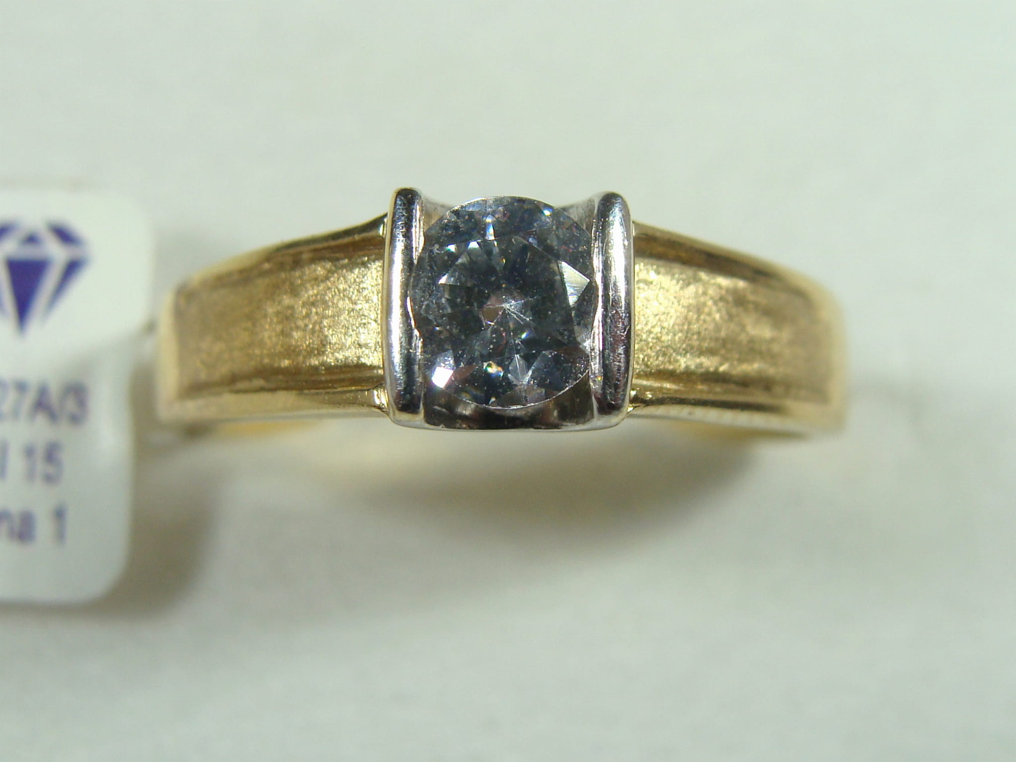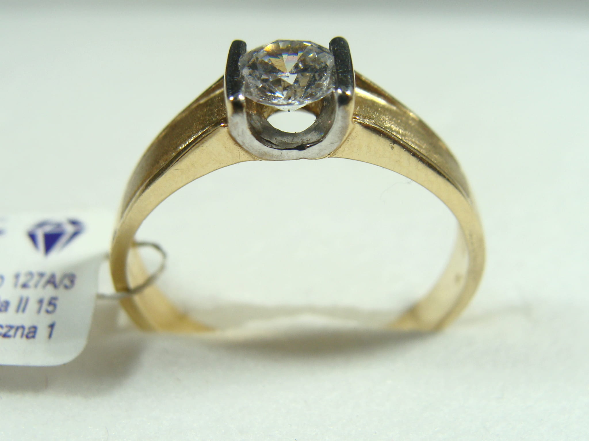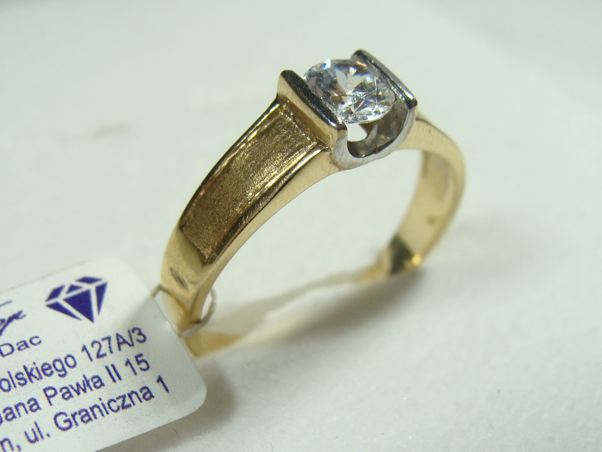 Złoty satynowany pierścionek z cyrkonią wykonany z żółtego złota próby 585.