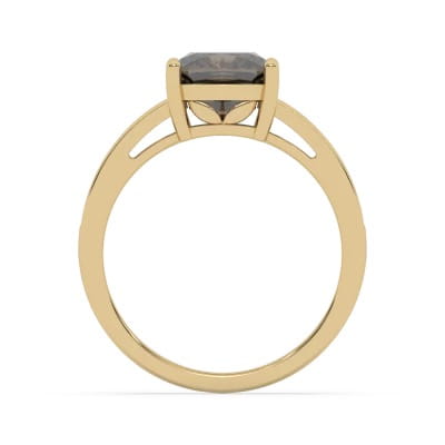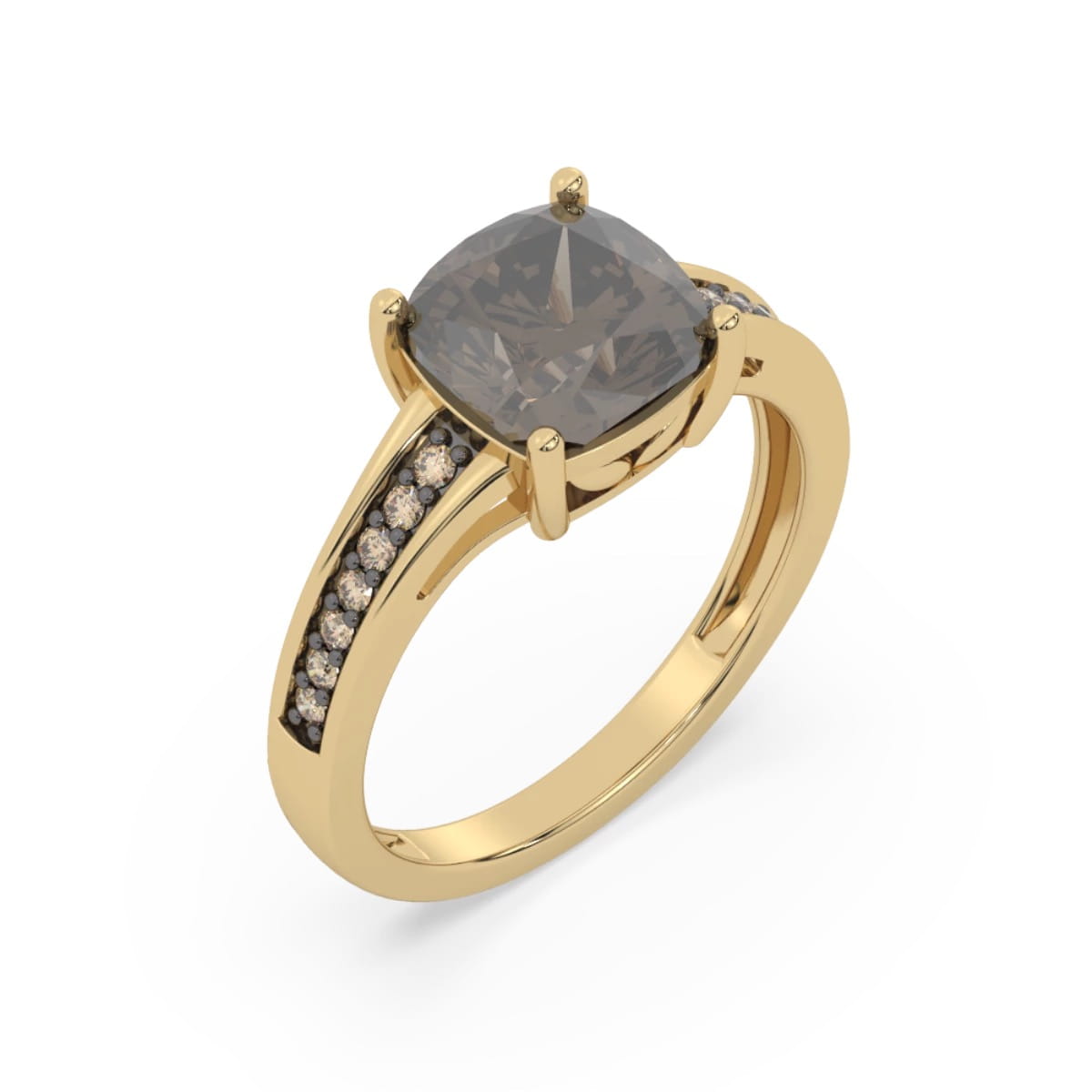 Złoty pierścionek z brylantami i kwarcem dymnym, wykonany ze złota.