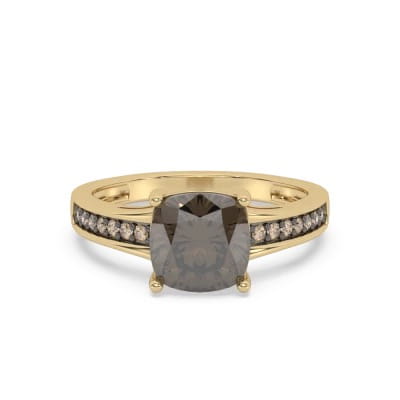 Złoty pierścionek z brylantami i kwarcem dymnym