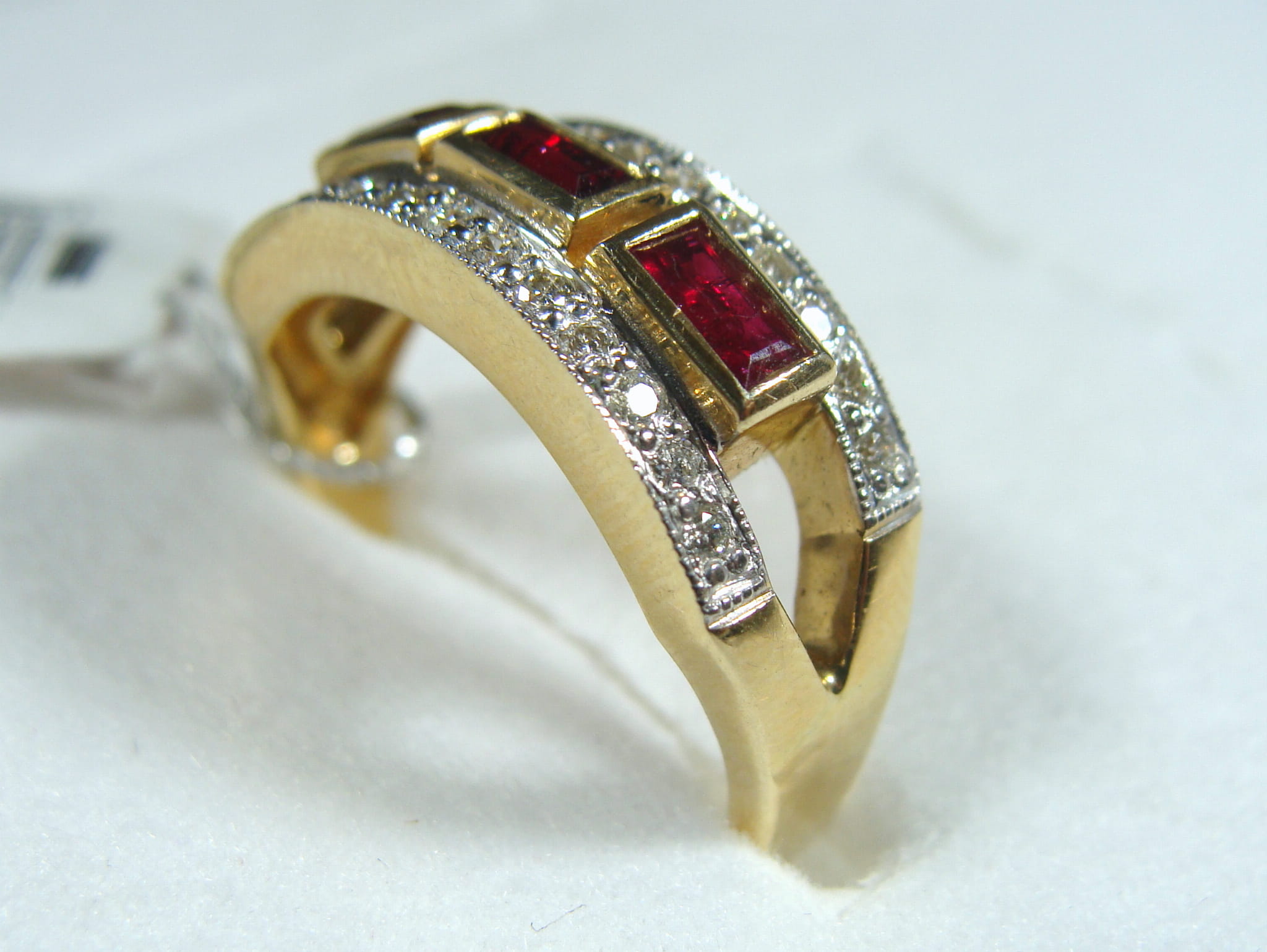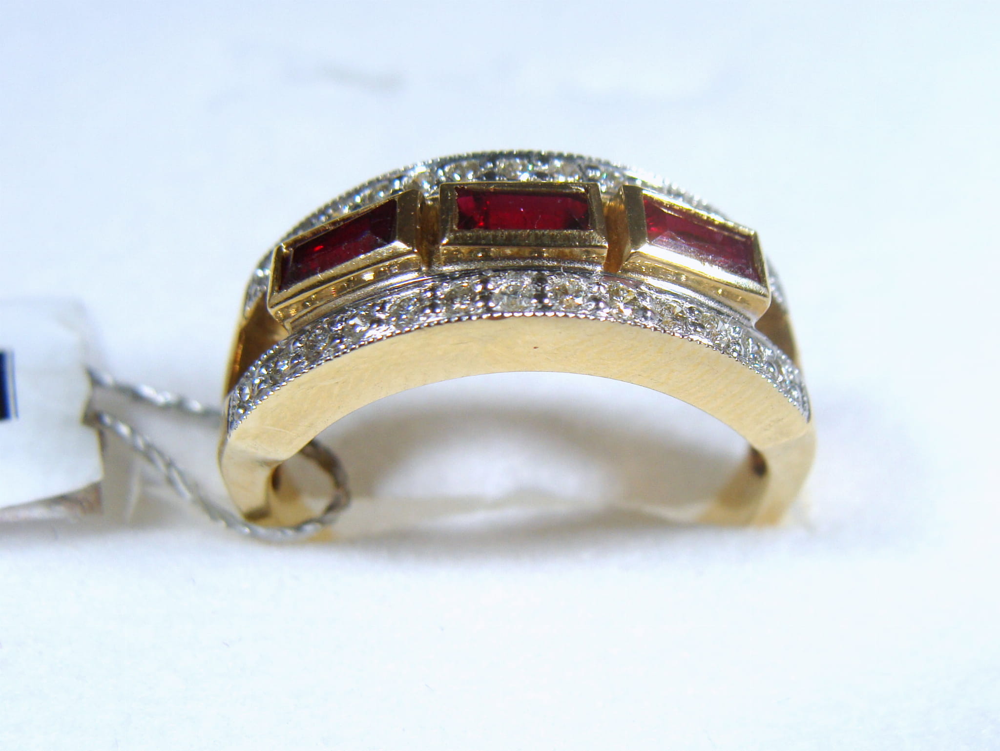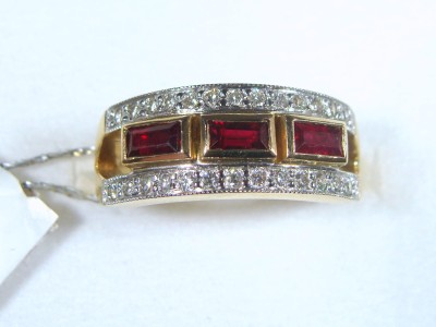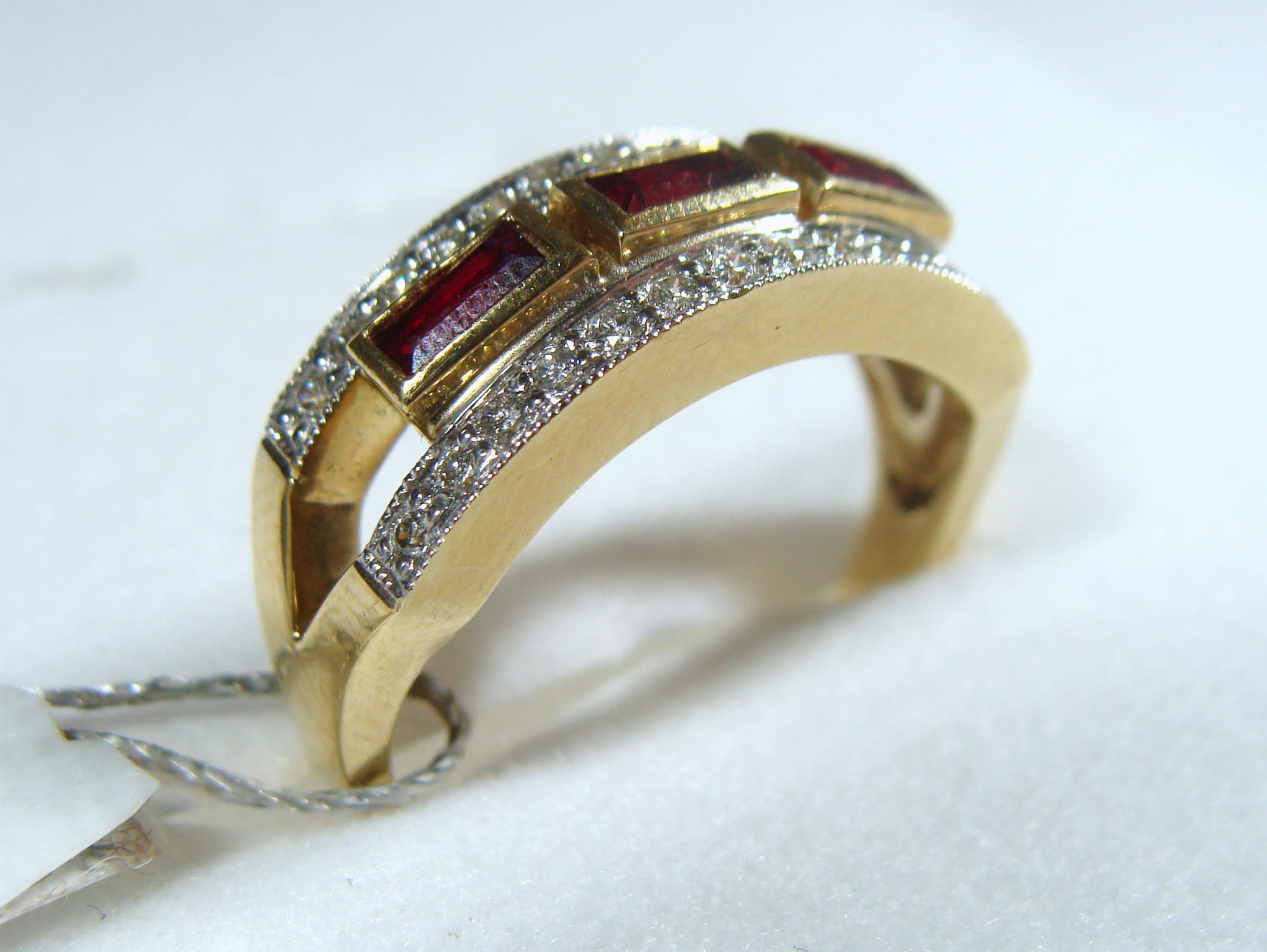 Pierścionek w formie obrączki z rubinami i brylantami