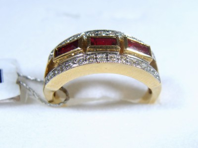 Złoty pierścionek z rubinami i brylantami GÓR0317